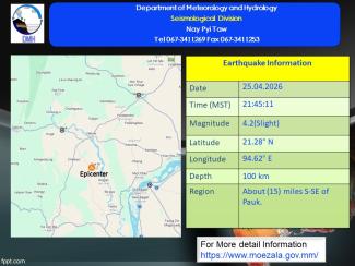Earthquake News၂၀၂၆ ခုနှစ် ၊ ဧပြီလ ၊ ( ၂၅ ) ရက်