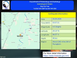 မြေငလျင်သတင်း၂၀၂၆ ခုနှစ် ၊ ဧပြီလ ၊ ( ၂၆ ) ရက်