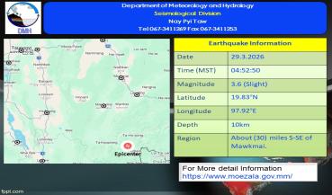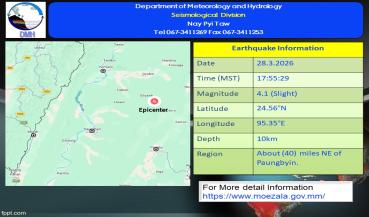 မြေငလျင်သတင်း၂၀၂၆ ခုနှစ် ၊ မတ်လ ၊ ( ၂၈ ) ရက်