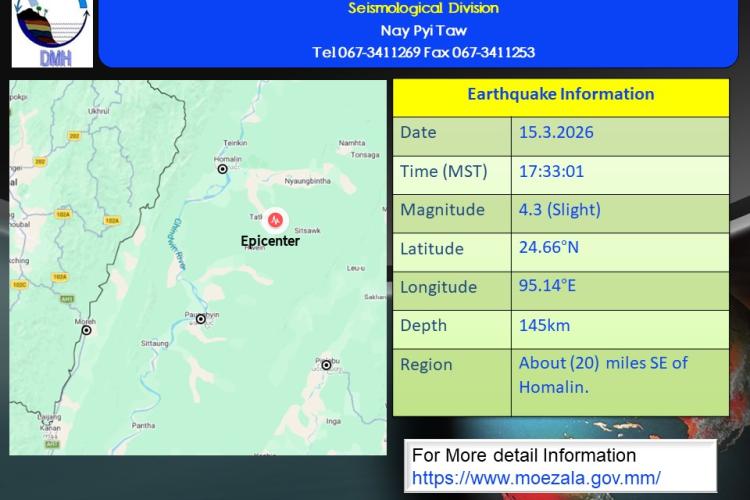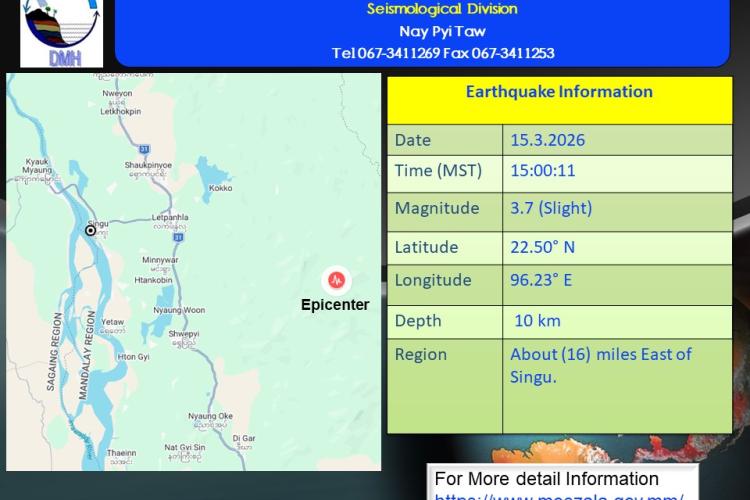 နောက်ဆက်တွဲမြေငလျင်သတင်းအမှတ်စဉ် -၂၈၆မိုးလေဝသနှင့်ဇလဗေဒညွှန်ကြားမှုဦးစီးဌာန