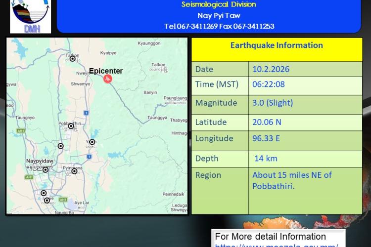 မြေငလျင်သတင်းမိုးလေဝသနှင့်ဇလဗေဒညွှန်ကြားမှုဦးစီးဌာန