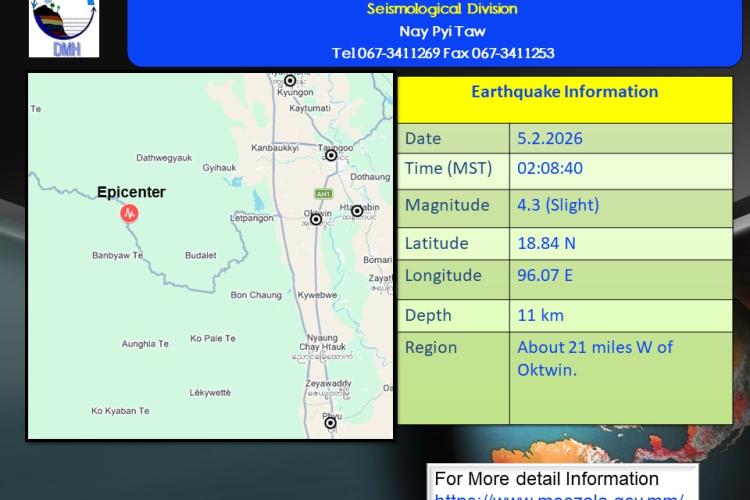 မြေငလျင်သတင်းမိုးလေဝသနှင့်ဇလဗေဒညွှန်ကြားမှုဦးစီးဌာန
