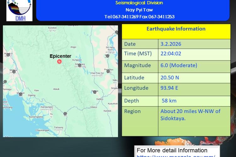 မြေငလျင်သတင်းမိုးလေဝသနှင့်ဇလဗေဒညွှန်ကြားမှုဦးစီးဌာန