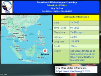 မြေငလျင်သတင်း၂၀၂၆ ခုနှစ် ၊ ဧပြီလ ၊ ( ၁ ) ရက်