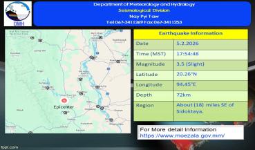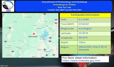 မြေငလျင်သတင်း၂၀၂၆ ခုနှစ် ၊ ဖေဖော်ဝါရီလ ၊ ( ၅ ) ရက်