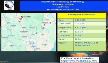 မြေငလျင်သတင်း၂၀၂၅ ခုနှစ် ၊ အောက်တိုဘာလ ၊ ( ၈ ) ရက်