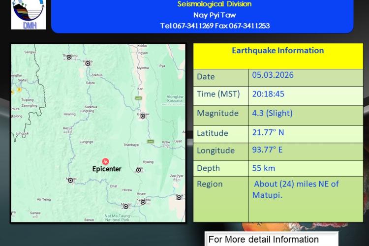မြေငလျင်သတင်းမိုးလေဝသနှင့်ဇလဗေဒညွှန်ကြားမှုဦးစီးဌာန