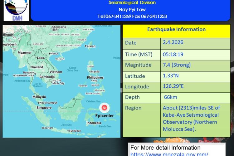 မြေငလျင်သတင်းမိုးလေဝသနှင့်ဇလဗေဒညွှန်ကြားမှုဦးစီးဌာန