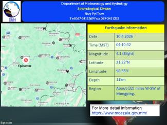 မြေငလျင်သတင်း၂၀၂၆ ခုနှစ် ၊ ဧပြီလ ၊ ( ၉ ) ရက်