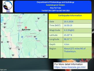 နောက်ဆက်တွဲမြေငလျင်သတင်း၂၀၂၆ ခုနှစ် ၊ မတ်လ ၊ ( ၂၀ ) ရက်