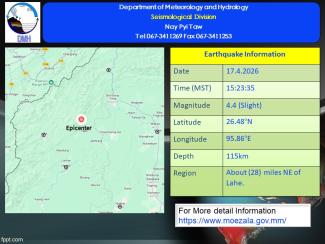 မြေငလျင်သတင်း၂၀၂၆ ခုနှစ် ၊ ဧပြီလ ၊ ( ၁၇ ) ရက်