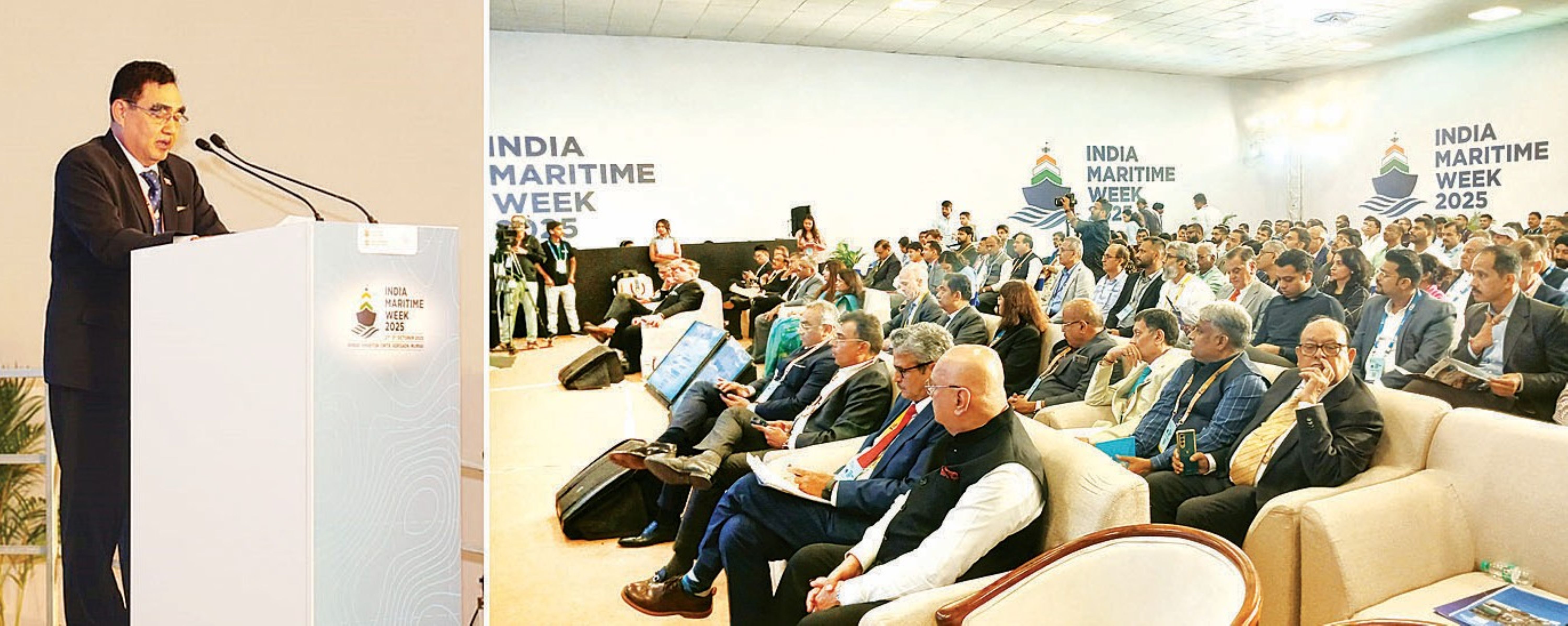 အိန္ဒိယနိုင်ငံ၊ မွန်ဘိုင်းမြို့ရှိ NESCO Exhibition Centerတွင် ကျင်းပပြုလုပ်သည့် အိန္ဒိယရေကြောင်းဆိုင်ရာ ရက်သတ္တပတ် - ၂၀၂၅ (INDIA MARITIME WEEK - 2025) အခမ်းအနား တက်ရောက်လျက်ရှိသော ဒုတိယဝန်ကြီး ဦးအောင်ကျော်ထွန်းသည် အောက်တိုဘာလ ၂၈ ရက်နေ့ နေ့လယ်ပိုင်းတွင် ဂျာဝါဟာနေဟူ ဆိပ်ကမ်းအာဏာပိုင်(Jawaharlal Nehru Ports Authority) မှ ကျင်းပပြုလုပ်သည့် ကုန်ပစ္စည်းများ ဖြန့်ဝေမှုကွင်းဆက်အား ခိုင်မာအောင်တည်ဆောက်ခြင်း (Fortifying Global Supply Chains) အခမ်းအနားသို့ အိန္ဒိယနိုင်ငံ၊ ပြည်နယ်၊ ဆိပ်ကမ်း၊ သင်္ဘောပို့ဆောင်ရေးနှင့် ရေကြောင်းဝန်ကြီး Shri Sahntanu Thakur နှင့်အတူ တက်ရောက်ခဲ့သည်။