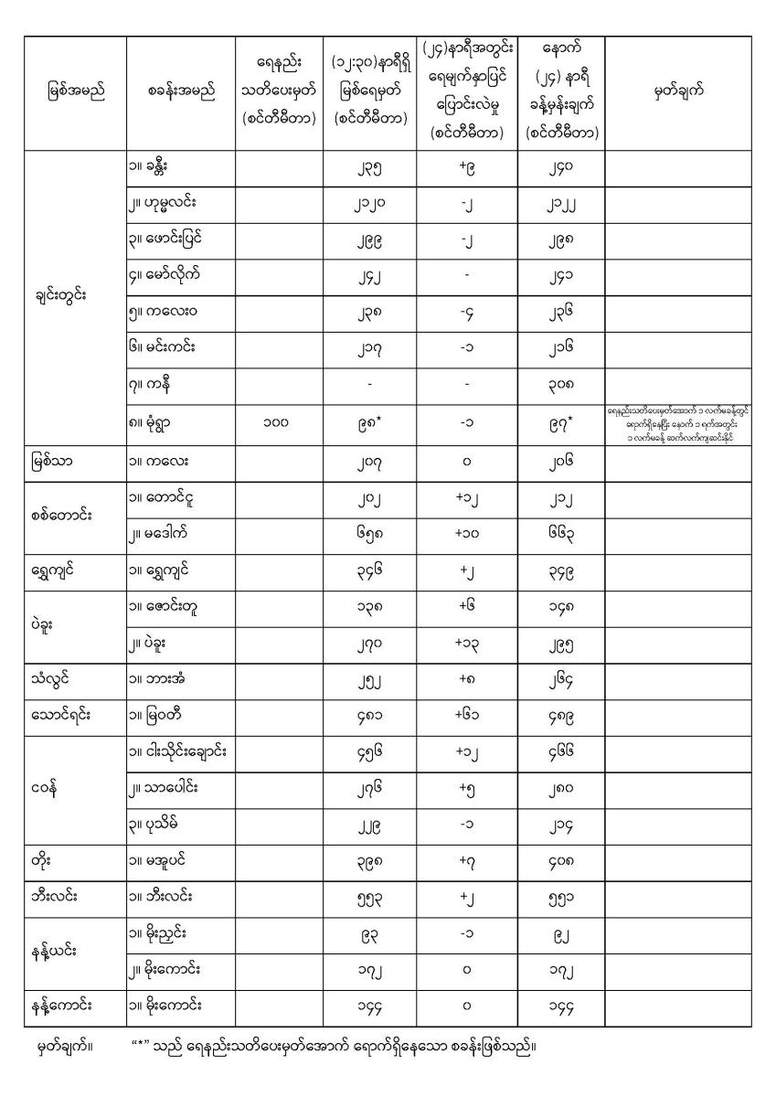 နေ့စဉ်မြစ်ရေခန့်မှန်းချက် ၁၂-၅-၂၀၂၅ ရက်နေ့ ၁၃:၀၀ နာရီအချိန်ထုတ်ပြန်ချက်