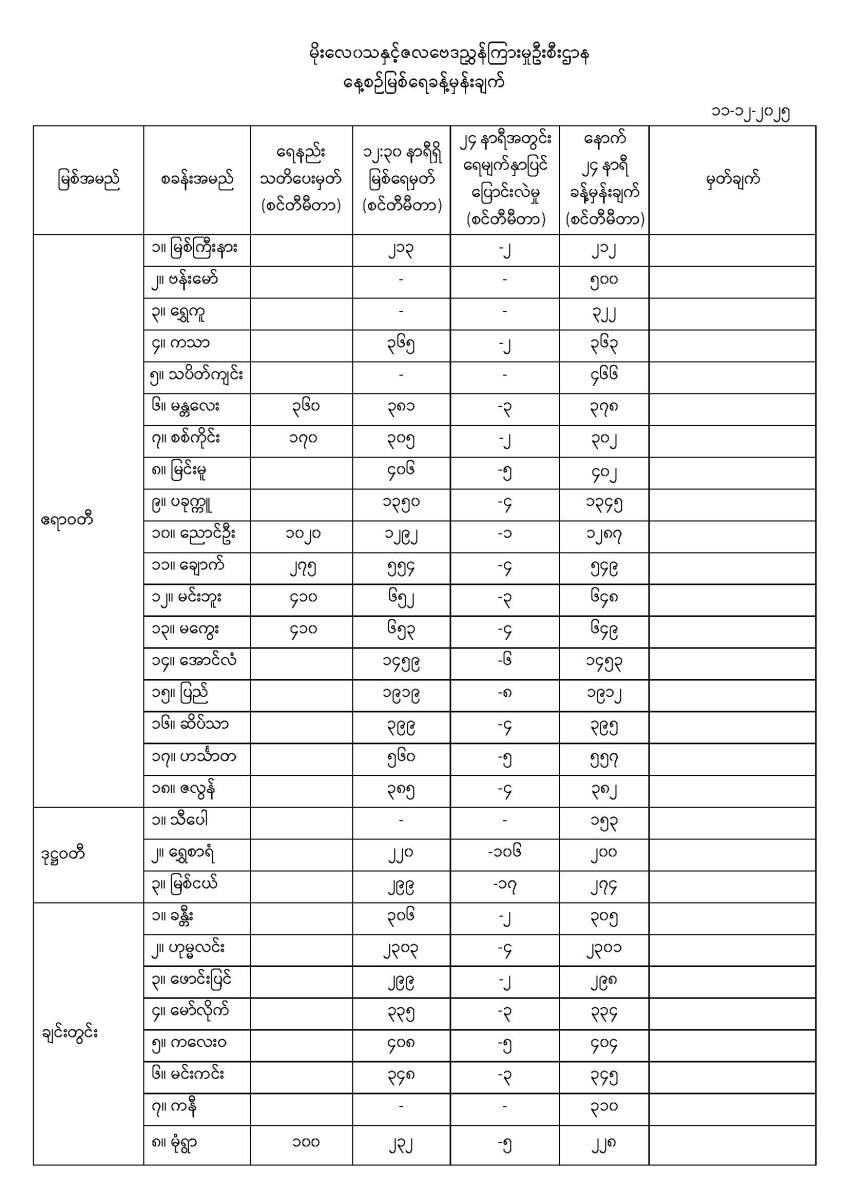 နေ့စဉ်မြစ်ရေခန့်မှန်းချက် Published: 11 Dec, 2025 Place: မိုးလေဝသနှင့်ဇလဗေဒညွှန်ကြားမှုဦးစီးဌာန မိုးလေဝသနှင့်ဇလဗေဒညွှန်ကြားမှုဦးစီးဌာနနေ့စဉ်မြစ်ရေခန့်မှန်းချက် ၁၁-၁၂-၂၀၂၅ ရက်နေ့ ၁၄:၀၀ နာရီအချိန်ထုတ်ပြန်ချက်(၁၀.၁၂.၂၀၂၅) မြစ်ရေခန့်မှန်းချက်(၉.၁၂.၂၀၂၅) မြစ်ရေခန့်မှန်းချက်(၈.၁၂.၂၀၂၅) မြစ်ရေခန့်မှန်းချက်