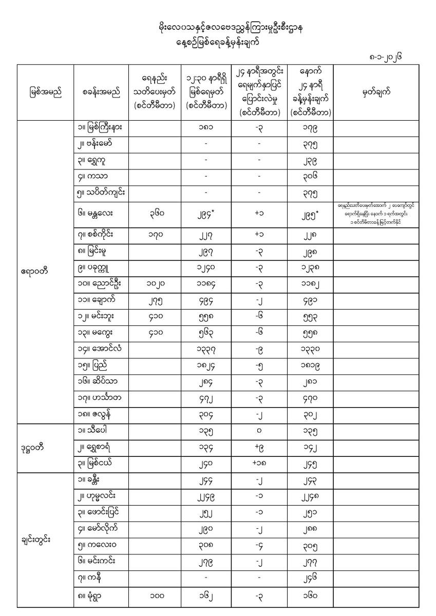 နေ့စဉ်မြစ်ရေခန့်မှန်းချက် Published: 08 Jan, 2026 Place: မိုးလေဝသနှင့်ဇလဗေဒညွှန်ကြားမှုဦးစီးဌာန မိုးလေဝသနှင့်ဇလဗေဒညွှန်ကြားမှုဦးစီးဌာနနေ့စဉ်မြစ်ရေခန့်မှန်းချက် ၈-၁-၂၀၂၆ ရက်နေ့ ၁၄:၀၀ နာရီအချိန်ထုတ်ပြန်ချက်(၇.၁.၂၀၂၆) မြစ်ရေခန့်မှန်းချက်(၆.၁.၂၀၂၆) မြစ်ရေခန့်မှန်းချက်(၅.၁.၂၀၂၆) မြစ်ရေခန့်မှန်းချက်