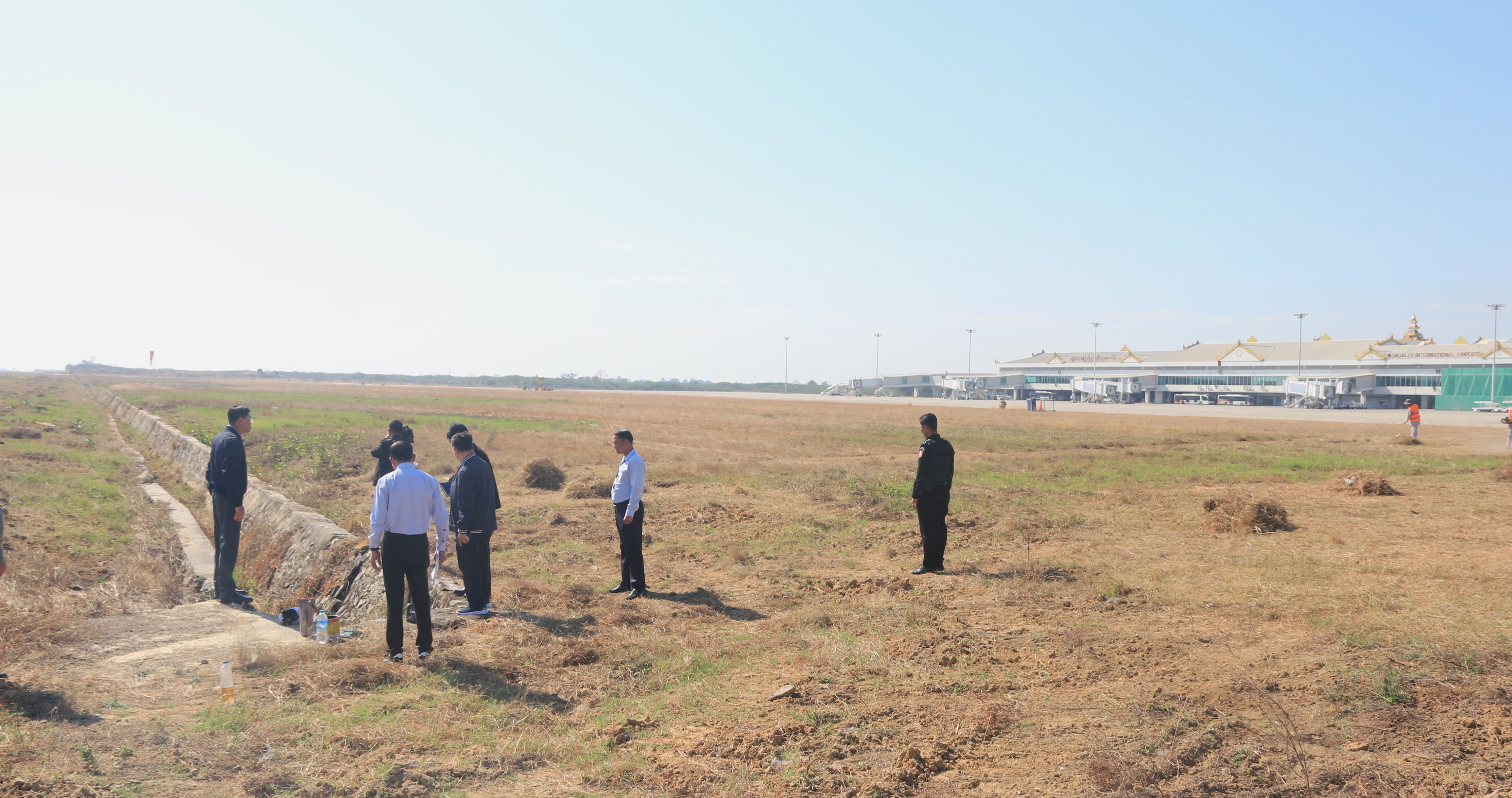 ထို့နောက် ပြည်ထောင်စုဝန်ကြီးနှင့်အဖွဲ့သည် မန္တလေးအပြည်ပြည်ဆိုင်ရာလေဆိပ်သို့ ရောက်ရှိပြီး ငလျင်ဒဏ်ကြောင့်ထိခိုက်ပျက်စီးခဲ့သည့် ခရီးသည်နားနေဆောင်၊ မြန်မာမှုအနုလက်ရာများ ပြုပြင်မွမ်းမံမှု၊ လေဆိပ်ရှိရေနုတ်မြောင်းများ ရေစီးရေလာကောင်းမွန်စေရေးဆောင်ရွက်မှု အခြေအနေများနှင့်ပတ်သက်၍ မန္တလေးအပြည်ပြည်ဆိုင်ရာလေဆိပ် တာဝန်ရှိသူများမှ ရှင်းလင်းတင်ပြမှုများကို လိုက်လံကြည့်ရှုစစ်ဆေးခဲ့ပါသည်။