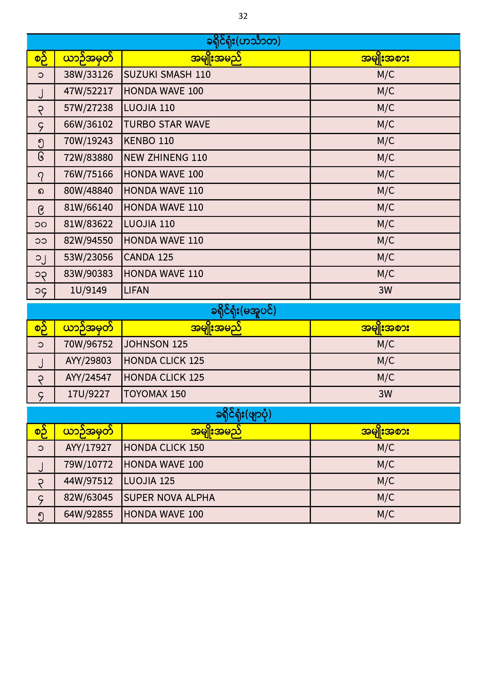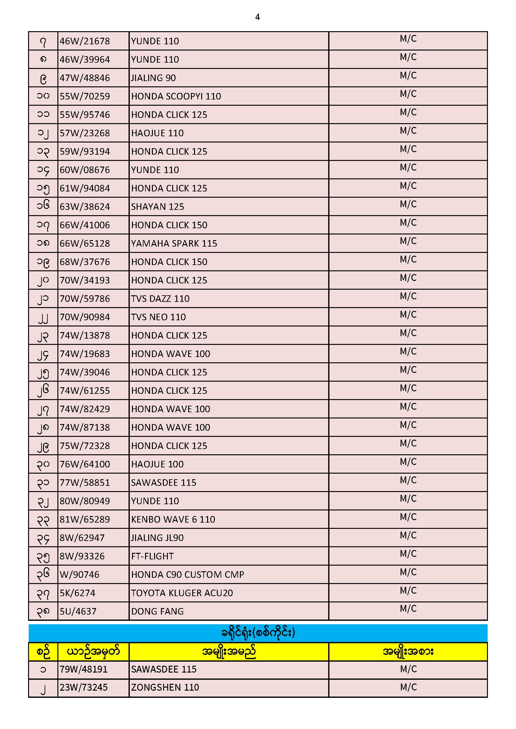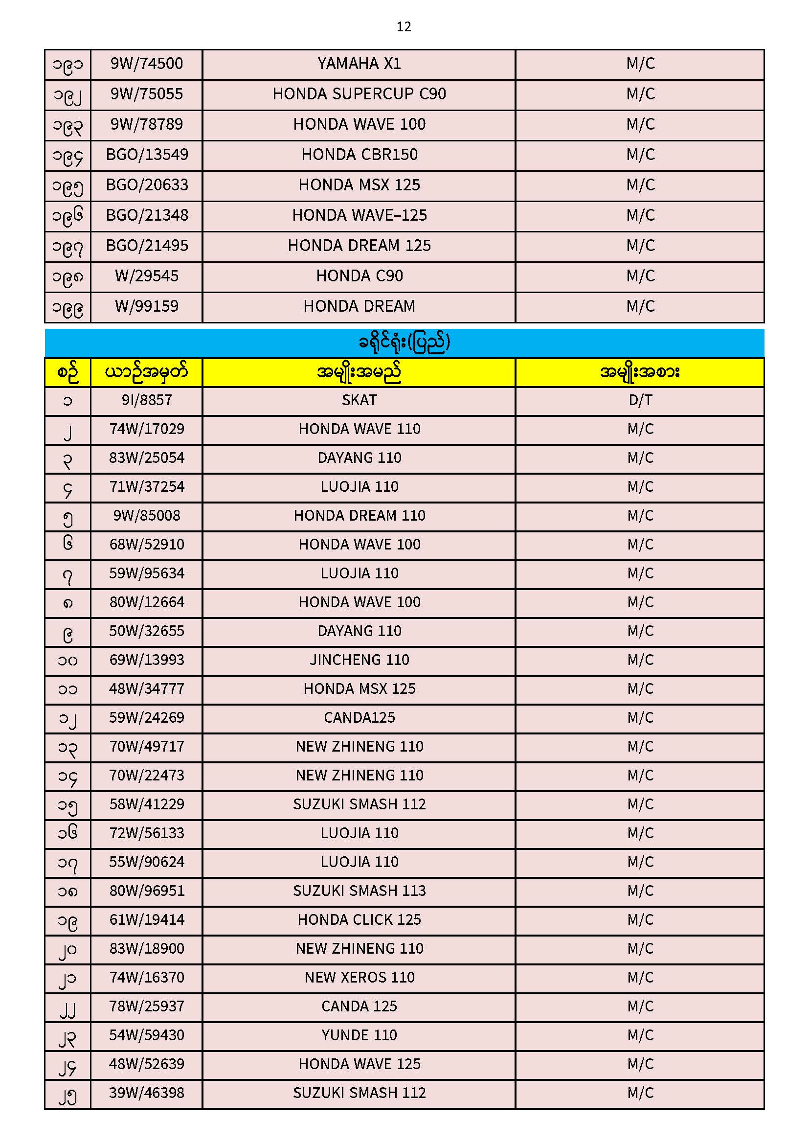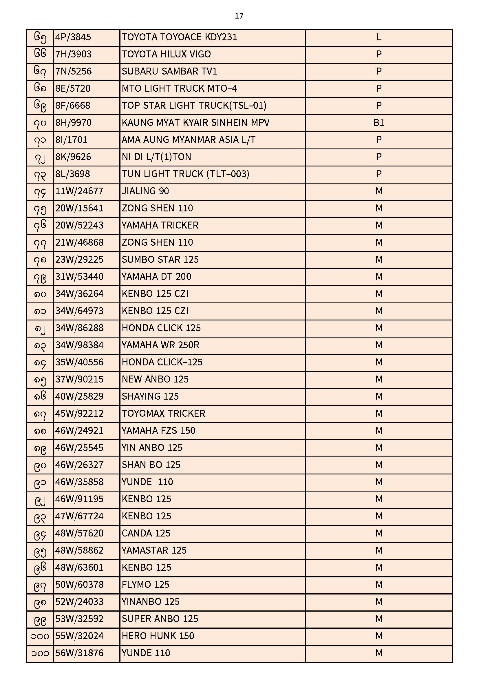 ၃၀.၁၁.၂၀၂၅ ရက်နေ့ထိ ယာဉ်မှတ်ပုံတင်စာအုပ်(ကမ-၃) ပျောက်ဆုံးမိတ္တူလာရောက် လျှောက်ထားသည့်စာရင်း Published: 04 Dec, 2025 Place: ကုန်းလမ်းပို့ဆောင်ရေးညွှန်ကြားမှုဦးစီးဌာန