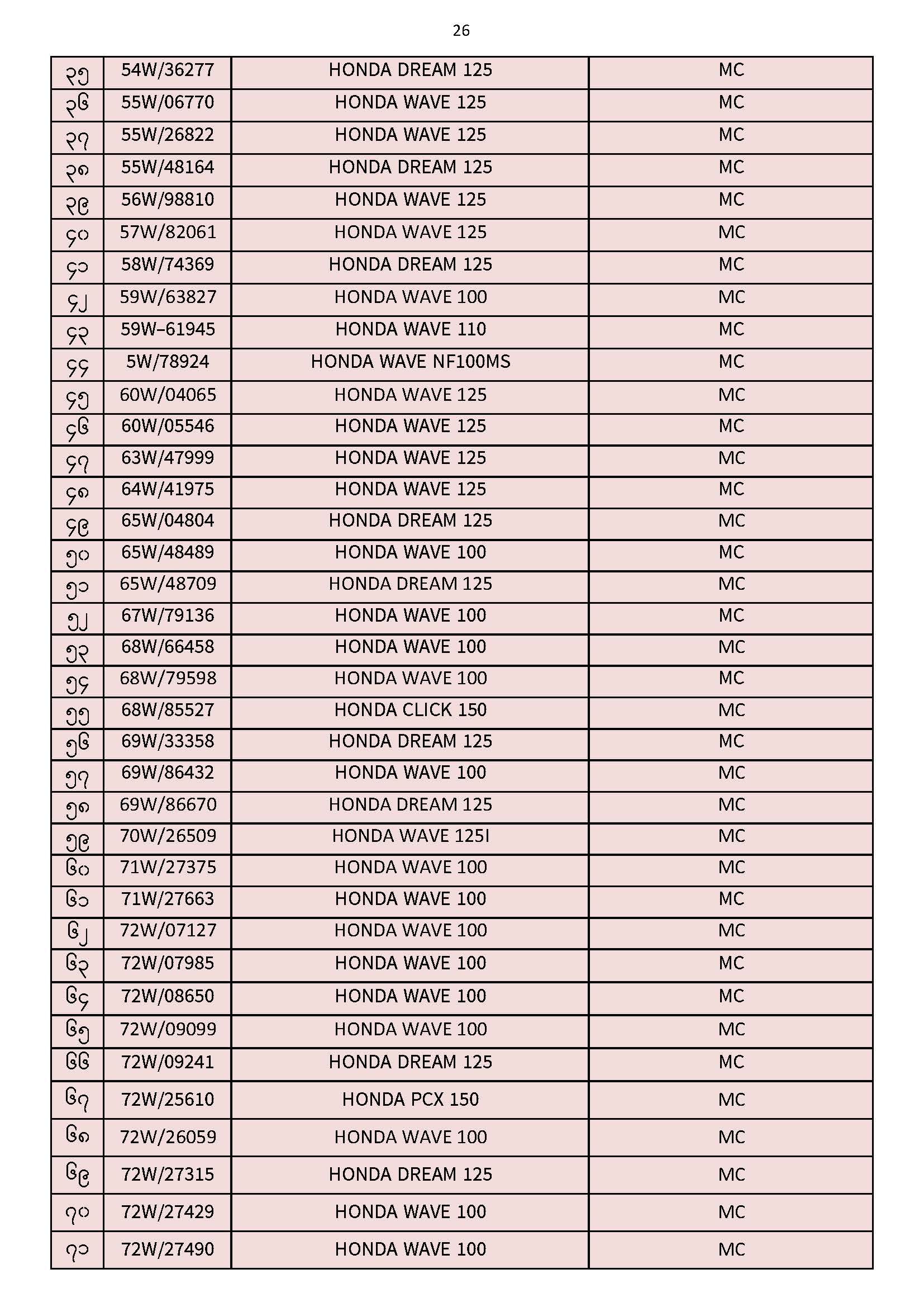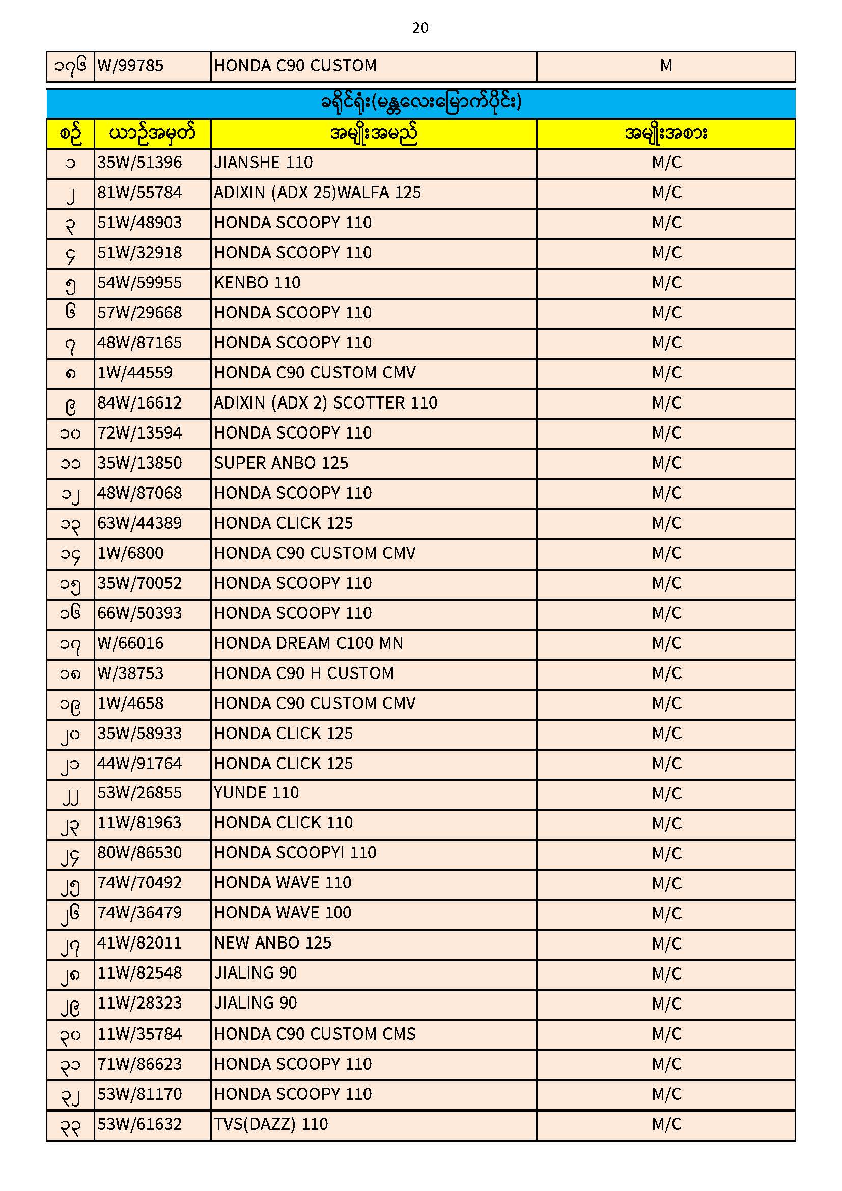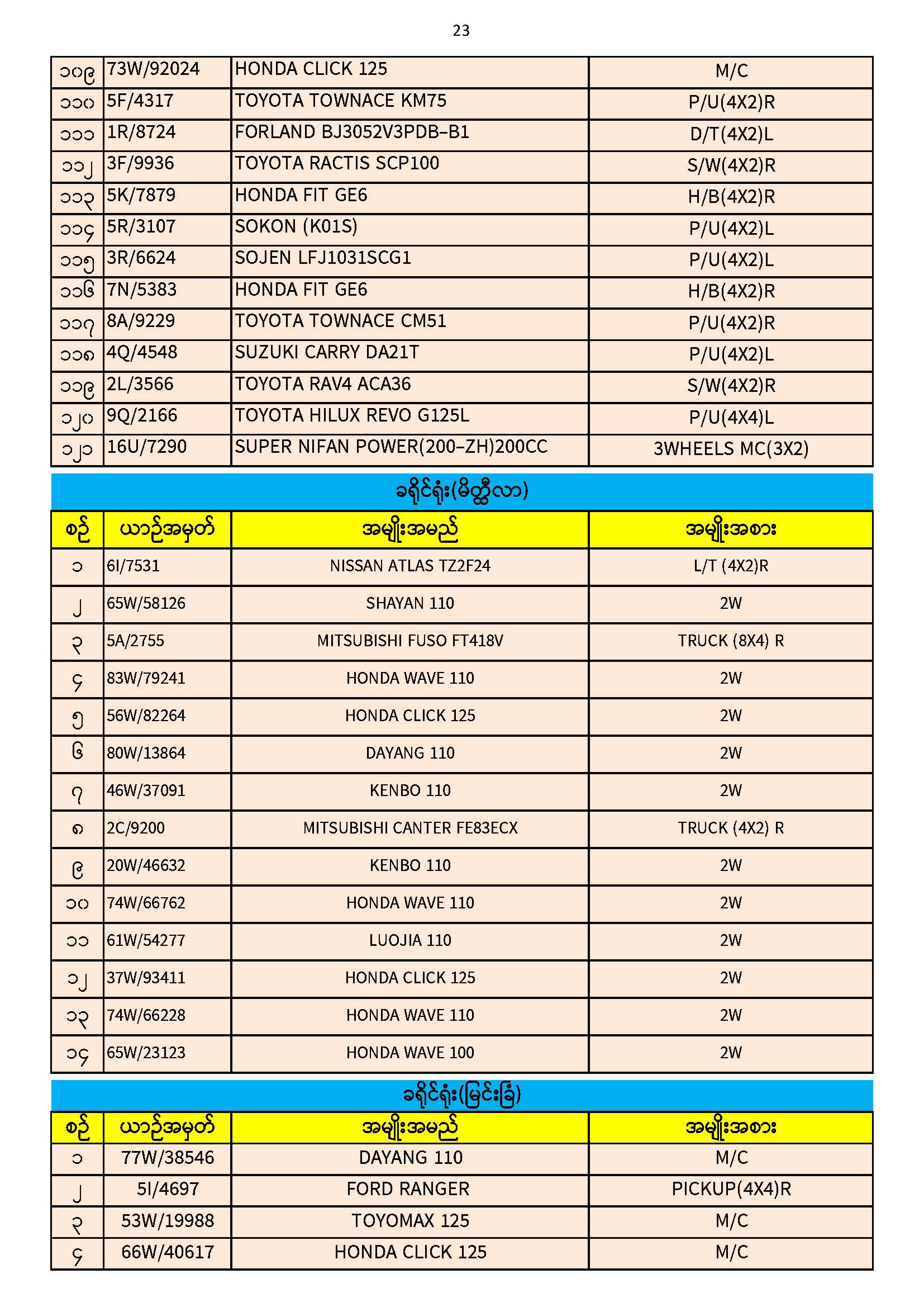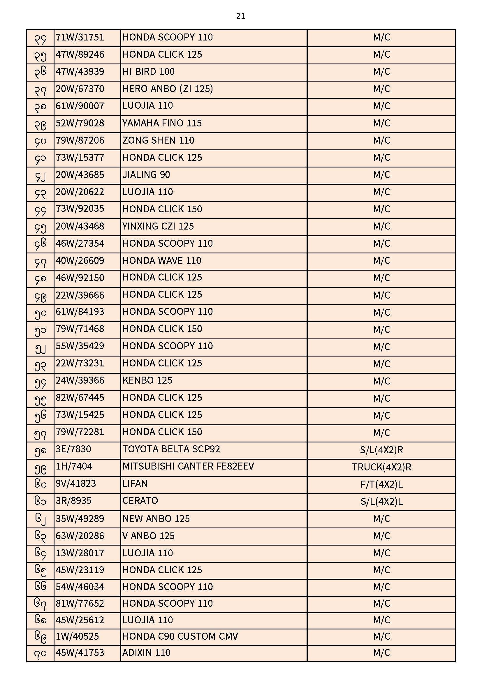 ၃၀.၁၁.၂၀၂၅ ရက်နေ့ထိ ယာဉ်မှတ်ပုံတင်စာအုပ်(ကမ-၃) ပျောက်ဆုံးမိတ္တူလာရောက် လျှောက်ထားသည့်စာရင်း Published: 04 Dec, 2025 Place: ကုန်းလမ်းပို့ဆောင်ရေးညွှန်ကြားမှုဦးစီးဌာန