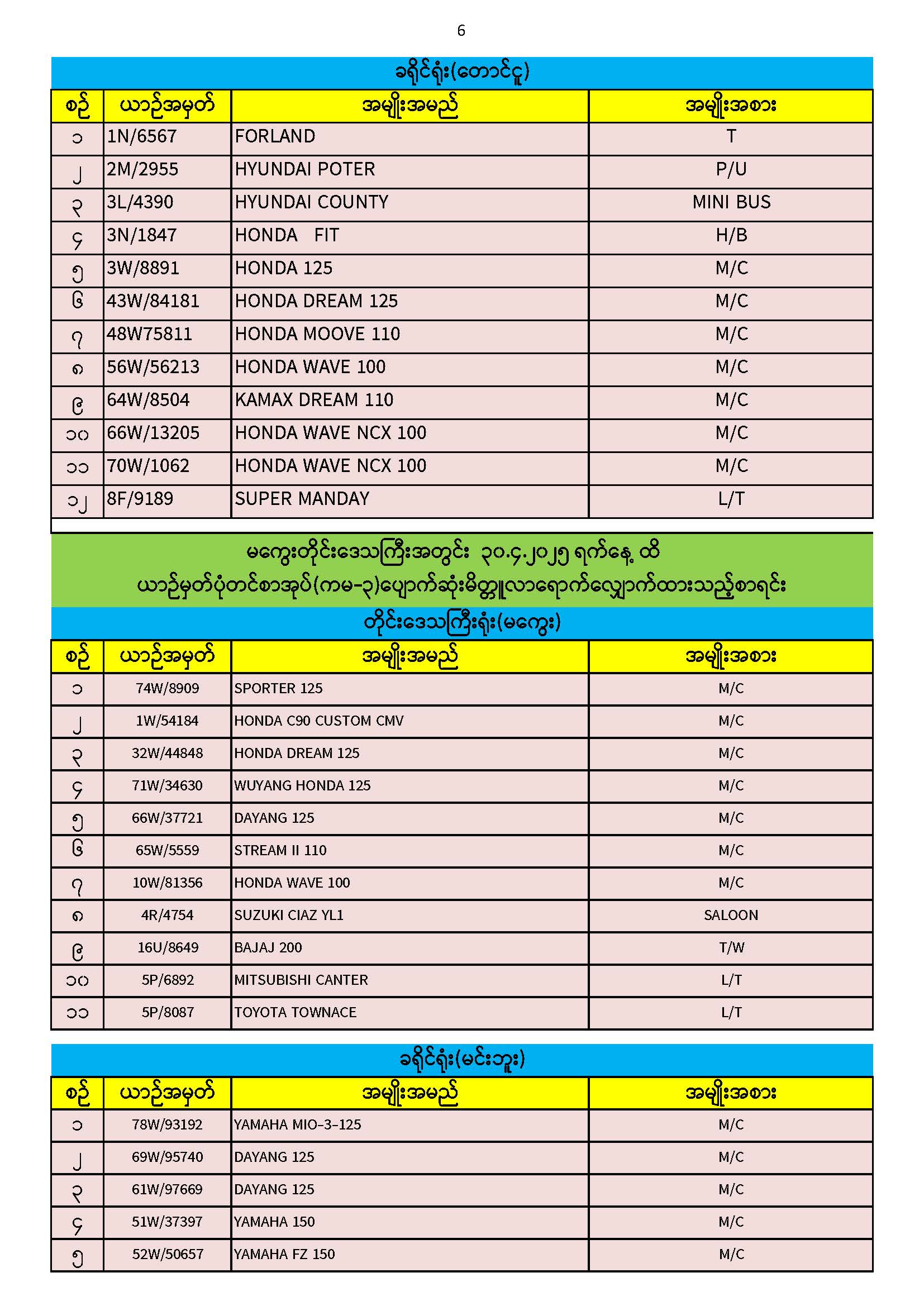 ၃၀.၄.၂၀၂၅ ရက်နေ့ထိ ယာဉ်မှတ်ပုံတင်စာအုပ်(ကမ-၃) ပျောက်ဆုံးမိတ္တူလာရောက် လျှောက်ထားသည့်စာရင်း Published: 13 May, 2025 Place: ကုန်းလမ်းပို့ဆောင်ရေးညွှန်ကြားမှုဦးစီးဌာန