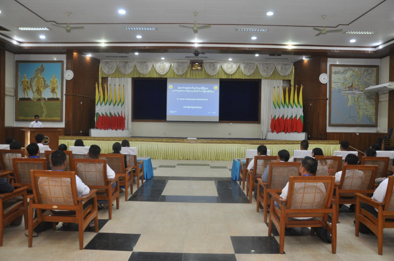 ပို့ဆောင်ရေးနှင့်ဆက်သွယ်ရေးဝန်ကြီးဌာန၊ သတင်းအချက်အလက်နည်းပညာနှင့် ဆိုက်ဘာလုံခြုံရေးဦးစီးဌာန၊ သတင်းအချက်အလက်နည်းပညာနှင့်ဆိုက်ဘာလုံခြုံရေးသင်တန်းကျောင်း၏ ၂၀၂၅-၂၀၂၆ လေ့ကျင့်သင်ကြားရေးနှစ်အတွင်း AI-Driven Transformation သင်တန်း၏ သင်တန်းဆင်းပွဲ အခမ်းအနားကို ၂၀၂၆ ခုနှစ်၊ ဇန်နဝါရီလ ၈ ရက်နေ့ နေ့လည်ပိုင်းတွင် စုပေါင်းခန်းမတွင် ကျင်းပပြုလုပ်ခဲ့ပါသည်။