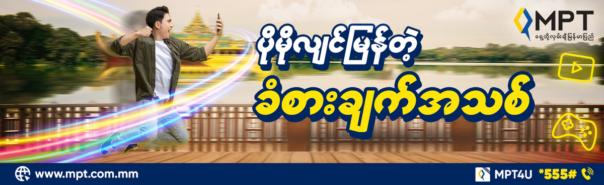 ကွန်ရက်တိုးချဲ့မှုနှင့်အတူ သုံးစွဲသူများ အဆင်ပြေလွယ်ကူစွာ အသုံးပြုနိုင်ရန်နှင့် စိတ်ကျေနပ်မှုရရှိစေရန်အတွက် အထူးသီးသန့် ဂိမ်းပက်ကေ့ချ်များ နှင့် အထူးကမ်းလှမ်းချက်များကို MPT က မိတ်ဆက်ပေးသွားမည် ဖြစ်ပါသည်။ ဤအစီအစဉ်မှတစ်ဆင့် MPT သုံးစွဲသူများအနေဖြင့် ဒေတာအသုံးပြုမှုအတွက် စိတ်ပူစရာမလိုဘဲ ပိုမိုလျင်မြန်သော ခံစားချက်အသစ် အတွေ့အကြုံများကို ရရှိခံစားနိုင်မည် ဖြစ်ပါသည်။ သုံးစွဲသူများသည် အဆိုပါ အထူးကမ်းလှမ်းချက်များကို *555# သို့ခေါ်ဆိုခြင်းဖြင့် သို့မဟုတ် MPT4U အက်ပလီကေးရှင်းမှတစ်ဆင့် ရယူခြင်းစသည့် နည်းလမ်းများဖြင့် ၂၀၂၃ ခုနှစ် နိုဝင်ဘာလ (၂၉) ရက်မှ ၂၀၂၄ ခုနှစ် မတ်လ (၃၁) ရက်အတွင်း ရရှိခံစားနိုင်မည် ဖြစ်ပါသည်။