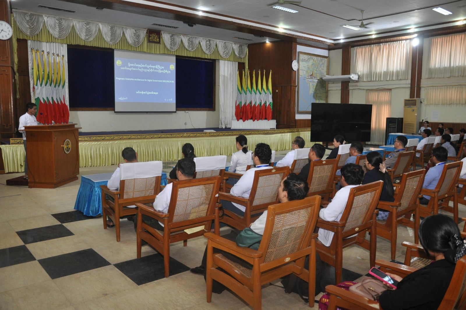 ပို့ဆောင်ရေးနှင့်ဆက်သွယ်ရေးဝန်ကြီးဌာန၊ သတင်းအချက်အလက်နည်းပညာနှင့် ဆိုက်ဘာ လုံခြုံရေးဦးစီးဌာန၊ သတင်းအချက်အလက်နည်းပညာနှင့် ဆိုက်ဘာလုံခြုံရေးသင်တန်းကျောင်း ၏ ၂၀၂၅-၂၀၂၆ လေ့ကျင့်သင်ကြားရေးနှစ်အတွင်း (ဒုတိယအကြိမ်) Pragmatic Enterprise Architecture for Digital Government သင်တန်း၏ သင်တန်းဆင်းပွဲ အခမ်းအနားကို ၂၀၂၆ ခုနှစ်၊ ဖေဖော်ဝါရီလ ၅ ရက်နေ့ နေ့လည်ပိုင်းတွင် ရုံးအမှတ် ၂ ၊ စုပေါင်းခန်းမတွင် ကျင်းပပြုလုပ်ခဲ့ ပါသည်။