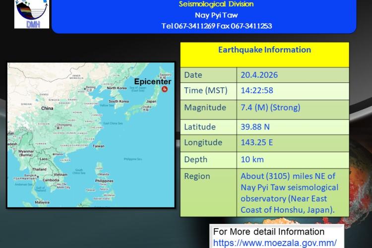 မြေငလျင်သတင်းမိုးလေဝသနှင့်ဇလဗေဒညွှန်ကြားမှုဦးစီးဌာန