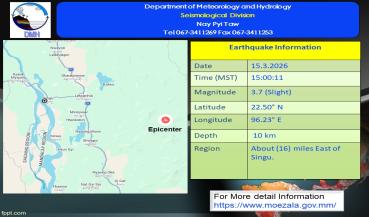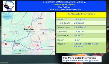 နောက်ဆက်တွဲမြေငလျင်သတင်းအမှတ်စဉ် -၂၈၆၂၀၂၆ ခုနှစ် ၊ မတ်လ ၊ ( ၁၅ ) ရက်
