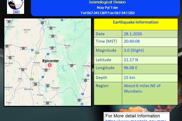 နောက်ဆက်တွဲမြေငလျင်သတင်းမိုးလေဝသနှင့်ဇလဗေဒညွှန်ကြားမှုဦးစီးဌာန