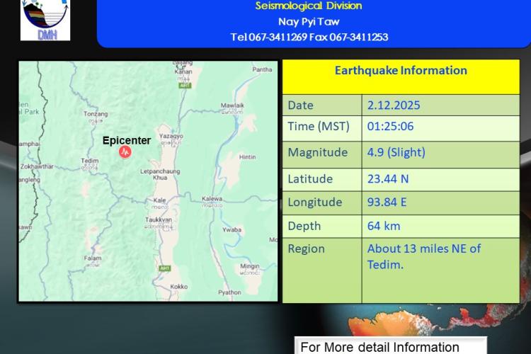 မြေငလျင်သတင်းမိုးလေဝသနှင့်ဇလဗေဒညွှန်ကြားမှုဦးစီးဌာန