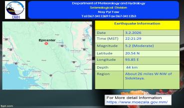 နောက်ဆက်တွဲမြေငလျင်သတင်း၂၀၂၆ ခုနှစ် ၊ ဖေဖော်ဝါရီလ ၊ ( ၃ ) ရက်