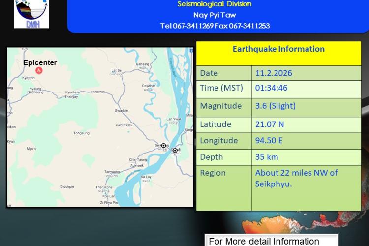 မြေငလျင်သတင်းမိုးလေဝသနှင့်ဇလဗေဒညွှန်ကြားမှုဦးစီးဌာန