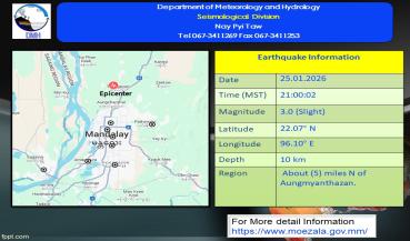 နောက်ဆက်တွဲမြေငလျင်သတင်း၂၀၂၆ ခုနှစ် ၊ ဇန်နဝါရီလ ၊ ( ၂၅ ) ရက်