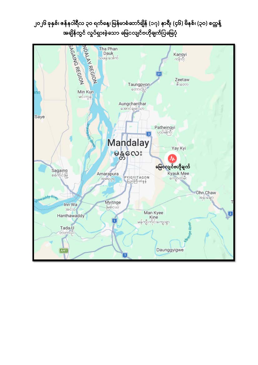 ဗဟိုချက်တည်နေရာ - ပုသိမ်ကြီးမြို့နယ်၏ တောင်ဘက် (၃)မိုင်ခန့်