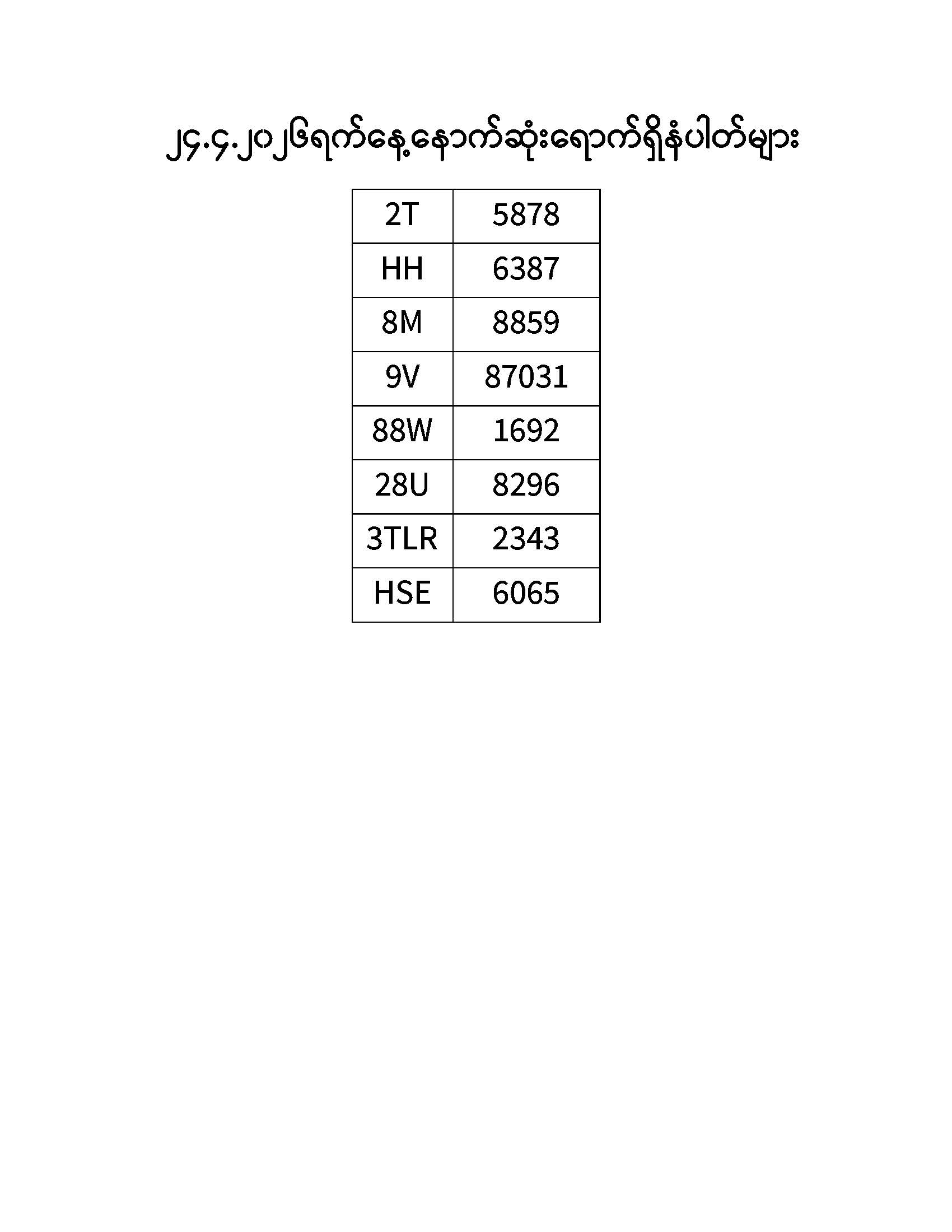 ၂၄.၄.၂၀၂၆ ရက်နေ့ထိ နောက်ဆုံးရောက်ရှိ နံပါတ်များ
