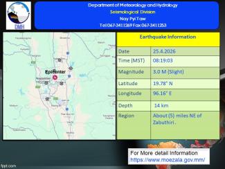 နောက်ဆက်တွဲမြေငလျင်သတင်း၂၀၂၆ ခုနှစ် ၊ ဧပြီလ ၊ ( ၂၄ ) ရက်