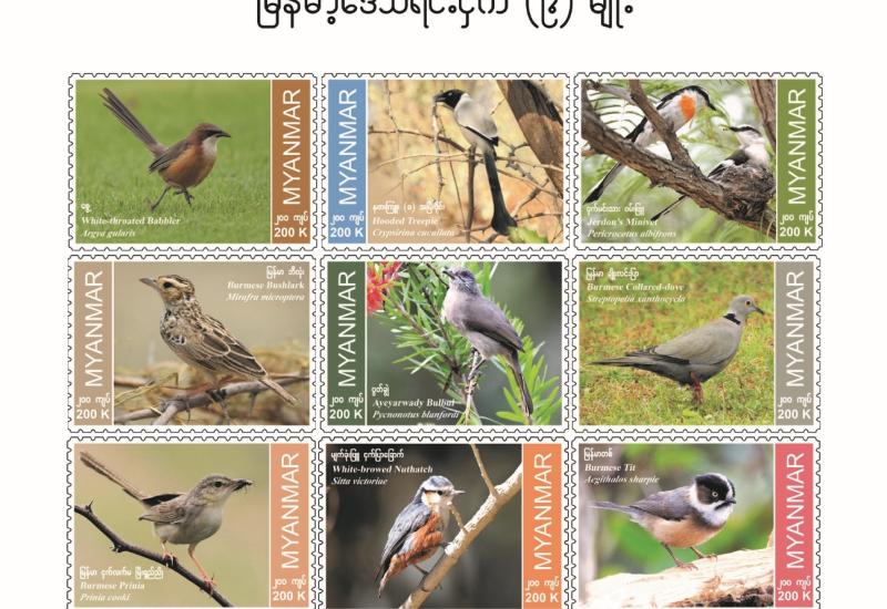 ပို့ဆောင်ရေးနှင့်ဆက်သွယ်ရေးဝန်ကြီးဌာန၊ မြန်မာ့စာတိုက်လုပ်ငန်းမှ မြန်မာနိုင်ငံ၌သာကျက်စားသည့် ဒေသရင်းငှက်မျိုးစိတ်(၉)မျိုးဖြင့် ထုတ်ဝေခဲ့ပြီးသော တံဆိပ်ခေါင်းများကို တံဆိပ်ခေါင်း စုဆောင်းသူ ဝါသနာရှင်များ တစ်စုတစ်စည်းတည်း စုဆောင်းနိုင်ကြရန် ရည်ရွယ်၍ မြန်မာ့ဒေသရင်း ငှက်မျိုးစိတ် အထူးထုတ် ၂၀၀ ကျပ်တန် (၉)လုံးပါ Block of Stamp စာပို့တံဆိပ်ခေါင်းသစ်(၁)မျိုးအား ၂၀၂၅ ခုနှစ်၊ ဩဂုတ်လ (၂၀) ရက်၊ မြန်မာသက္ကရာဇ် ၁၃၈၇ခုနှစ်၊ ဝါခေါင်လပြည့်ကျော်(၁၂)ရက် (ဗုဒ္ဓဟူးနေ့) နံနက်(၀၉:၃၀)နာရီ အချိန်မှစတင်၍ နေပြည်တော်ဗဟိုစာတိုက်ကြီး၊ ရန်ကုန်စာတိုက်ကြီး၊ မန္တလေးစာတိုက်ကြီးတို့နှင့် တိုင်းဒေသကြီး / ပြည်နယ်များရှိ စာတိုက်ကြီးများတွင် တစ်ပြိုင်တည်းရောင်းချပေးသွားမည်ဖြစ်ပါသည်။