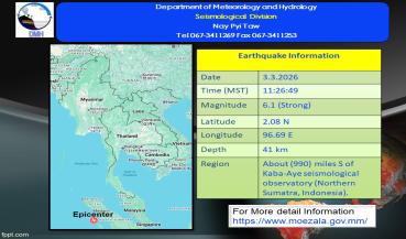 မြေငလျင်သတင်း၂၀၂၆ ခုနှစ် ၊ မတ်လ ၊ ( ၂ ) ရက်