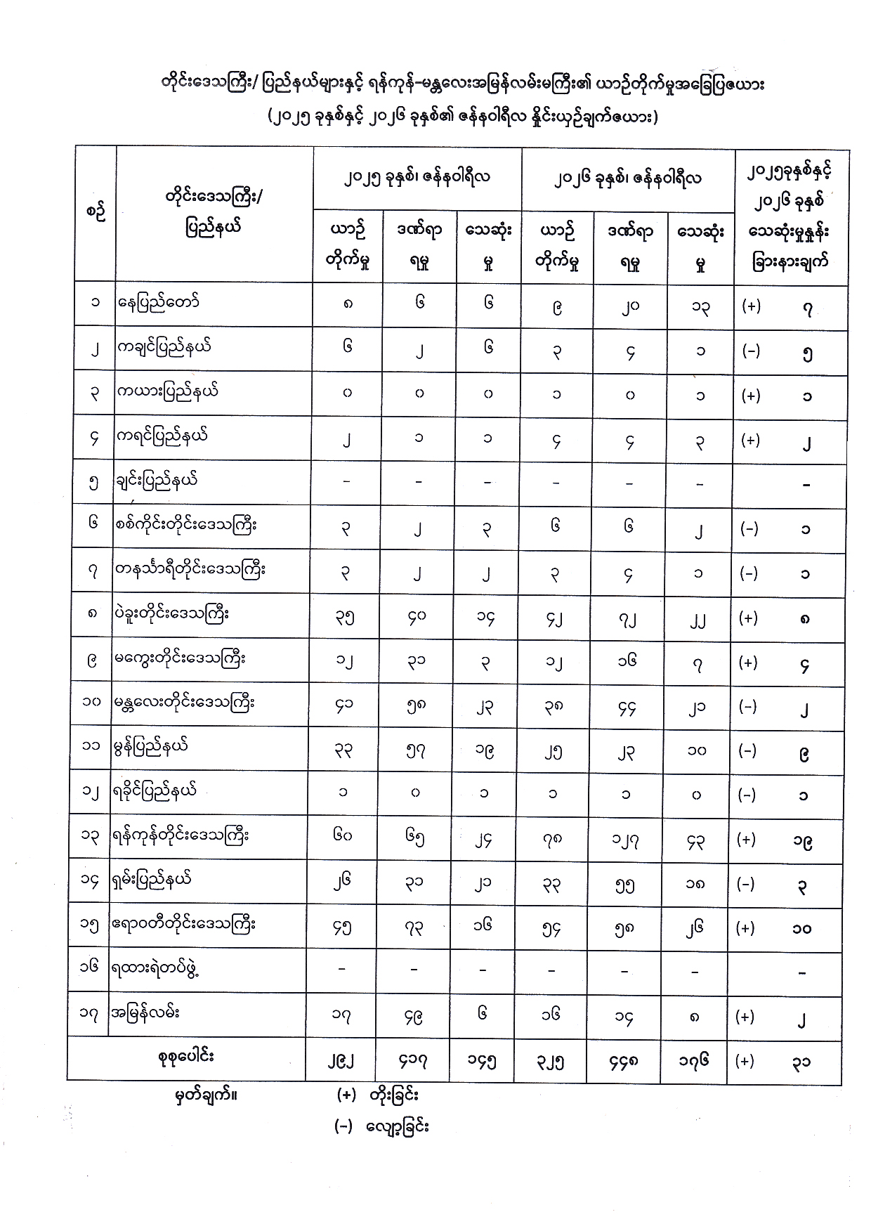 တိုင်းဒေသကြီး/ ပြည်နယ်များနှင့် ရန်ကုန်-မန္တလေးအမြန်လမ်းမကြီး၏ ယာဉ်တိုက်ခိုက်မှု အခြေပြဇယား(၂၀၂၅ ခုနှစ်နှင့် ၂၀၂၆ခုနှစ်၏ ဇန်နဝါရီလ နှိုင်းယှဉ်ချက်ဇယား)