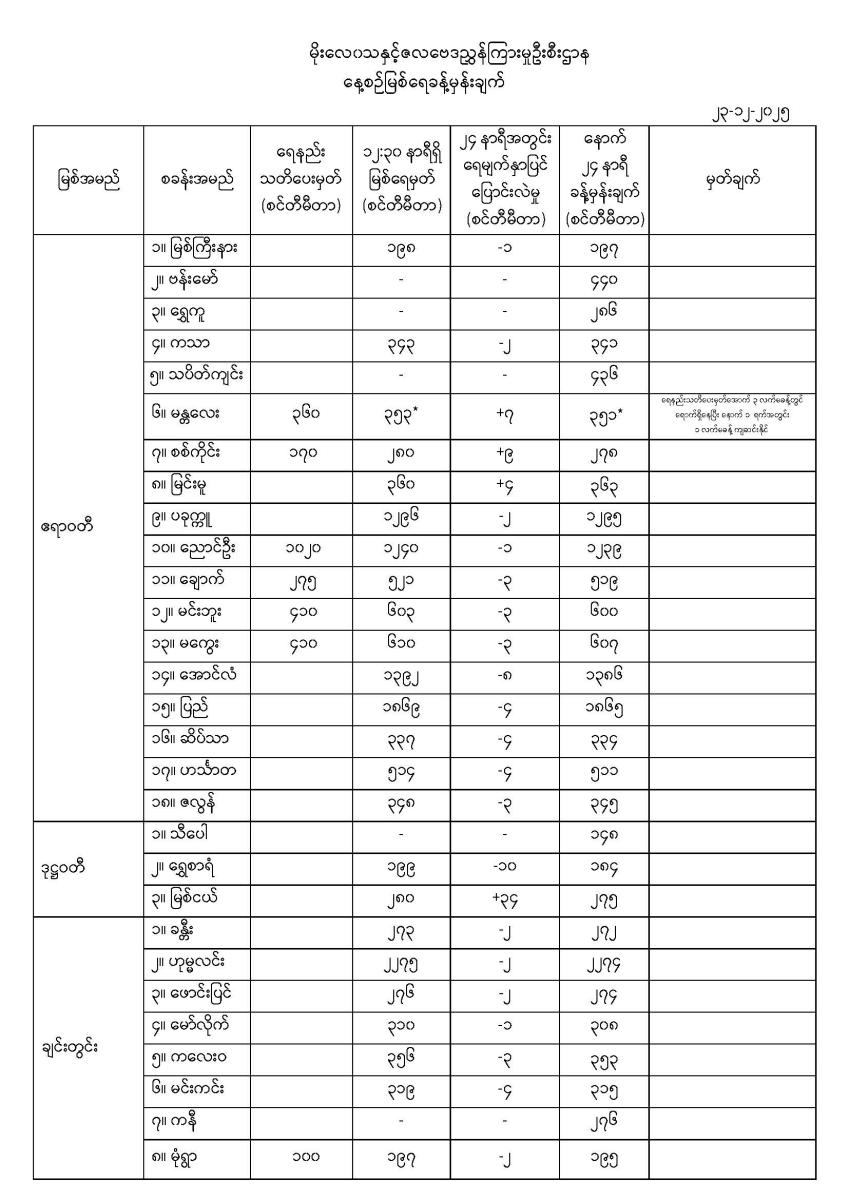 နေ့စဉ်မြစ်ရေခန့်မှန်းချက်  ၂၃-၁၂-၂၀၂၅ ရက်နေ့ ၁၄:၀၀ နာရီအချိန်ထုတ်ပြန်ချက်