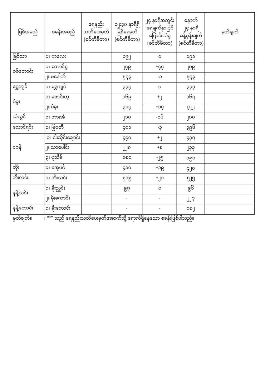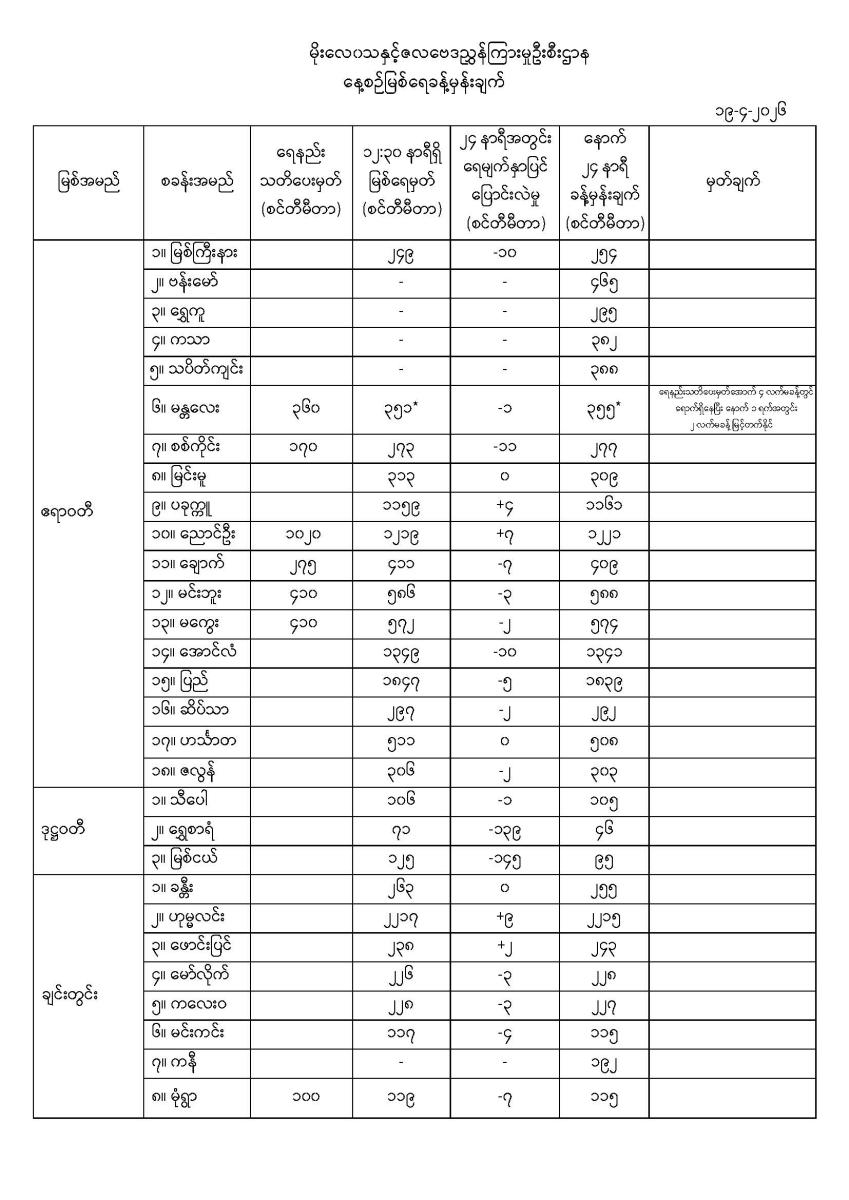 နေ့စဉ်မြစ်ရေခန့်မှန်းချက် Published: 19 Apr, 2026 Place: မိုးလေဝသနှင့်ဇလဗေဒညွှန်ကြားမှုဦးစီးဌာန မိုးလေဝသနှင့်ဇလဗေဒညွှန်ကြားမှုဦးစီးဌာနနေ့စဉ်မြစ်ရေခန့်မှန်းချက် ၁၉-၄-၂၀၂၆ ရက်နေ့ ၁၄:၀၀ နာရီအချိန်ထုတ်ပြန်ချက် (၁၈.၄.၂၀၂၆) မြစ်ရေခန့်မှန်းချက်(၁၇.၄.၂၀၂၆) မြစ်ရေခန့်မှန်းချက်(၁၆.၄.၂၀၂၆) မြစ်ရေခန့်မှန်းချက်