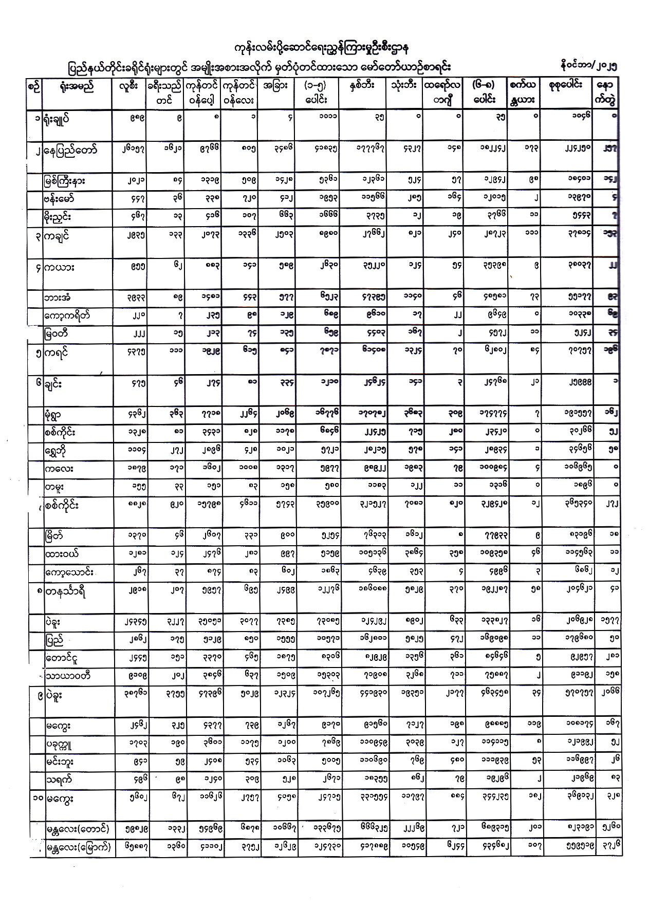 ၂၀၂၅ ခုနှစ်၊ နိုဝင်ဘာလထိ ပြည်နယ်တိုင်းခရိုင်ရုံးများတွင် အမျိုးအစားအလိုက် မှတ်ပုံတင်ထားသော မော်တော်ယာဉ်စာရင်း Published: 02 Dec, 2025 Place: ကုန်းလမ်းပို့ဆောင်ရေးညွှန်ကြားမှုဦးစီးဌာန