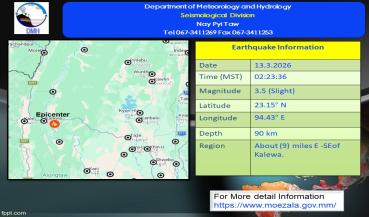မြေငလျင်သတင်း၂၀၂၆ ခုနှစ် ၊ မတ်လ ၊ ( ၁၄ ) ရက်