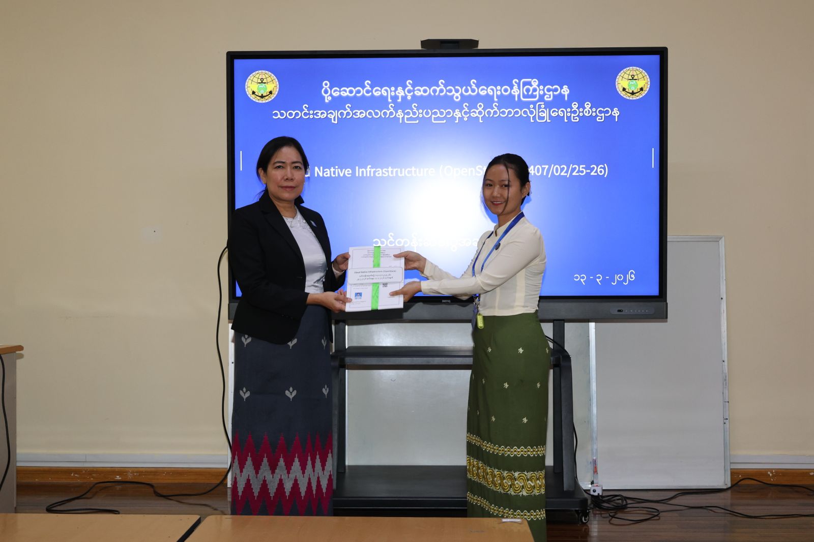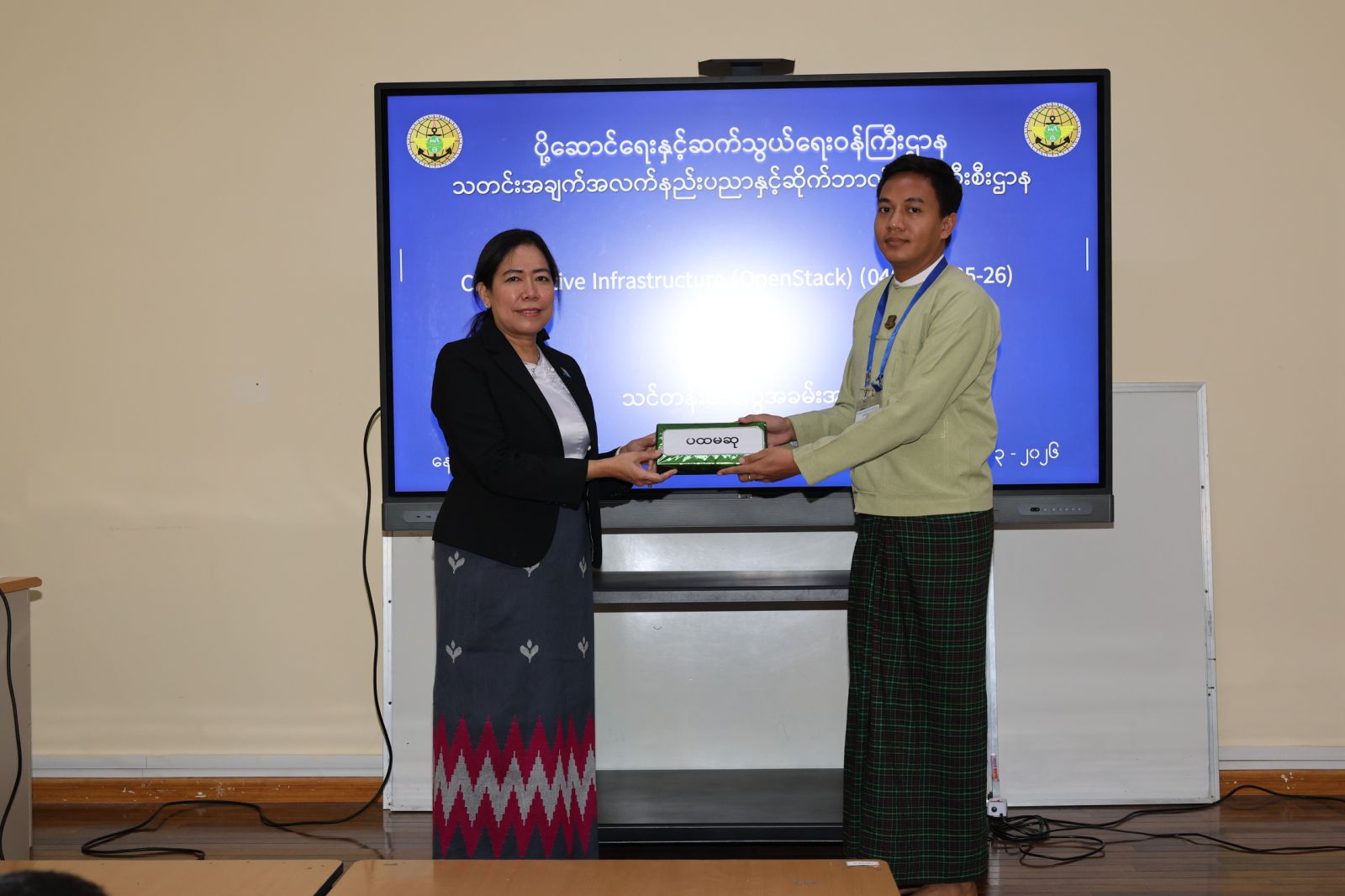 ပို့ဆောင်ရေးနှင့်ဆက်သွယ်ရေးဝန်ကြီးဌာန၊ သတင်းအချက်အလက်နည်းပညာနှင့်ဆိုက်ဘာလုံခြုံရေးဦးစီးဌာန၊ သတင်းအချက်အလက်နည်းပညာနှင့်ဆိုက်ဘာလုံခြုံရေးသင်တန်းကျောင်း၏ ၂၀၂၅-၂၆ လေ့ကျင့်သင်ကြားရေးနှစ်အတွင်း Cloud Native Infrastructure (Open Stack) သင်တန်း၏ သင်တန်းဆင်းပွဲအခမ်းအနားကို ၂၀၂၆ ခုနှစ် မတ်လ ၁၃ ရက်နေ့ နေ့လည်ပိုင်းတွင် e-Learning Center I တွင် ကျင်းပပြုလုပ်ခဲ့ရာ ပို့ဆောင်ရေးနှင့်ဆက်သွယ်ရေးဝန်ကြီးဌာန၊ သတင်းအချက်အလက်နည်းပညာနှင့်ဆိုက်ဘာလုံခြုံရေးဦးစီးဌာန၊ သတင်းအချက်အလက်နည်းပညာနှင့်ဆိုက်ဘာလုံခြုံရေးသင်တန်းကျောင်း ကျောင်းအုပ် ဒေါ်နှင်းခိုင်အေးနှင့် တကွ ဌာနအကြီးအကဲများ၊ ပြည်ထောင်စုအဆင့်အဖွဲ့အစည်းများနှင့် ပြည်ထောင်စုဝန်ကြီးဌာန အသီးသီးမှ သင်တန်းသား/သင်တန်းသူများ စုစုပေါင်း ၂၂ ဦး တက်ရောက်ခဲ့ကြောင်း သိရှိ ရပါသည်။