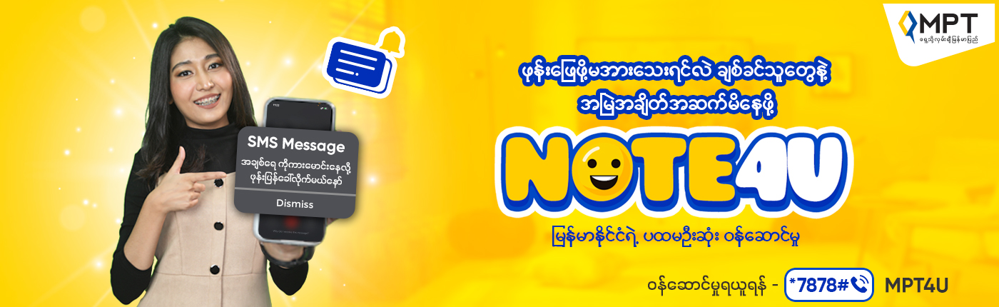 MPT မှ တန်ဖိုးထားရသော သုံးစွဲသူများအတွက် မြန်မာ့ပထမဆုံး Note4U ဝန်ဆောင်မှုကို မိတ်ဆက်