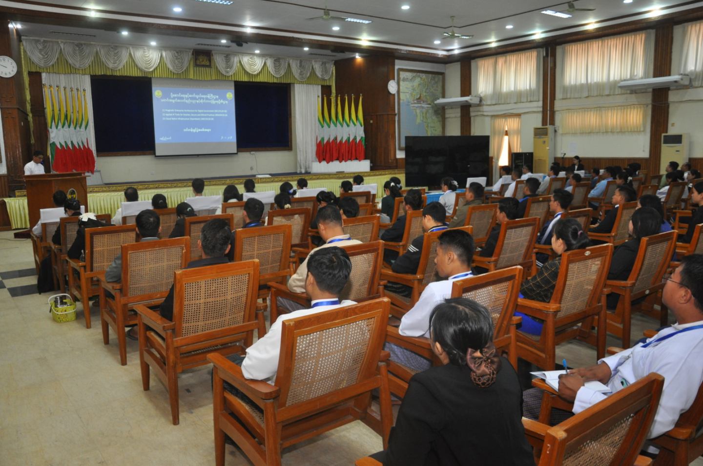 ပို့ဆောင်ရေးနှင့်ဆက်သွယ်ရေးဝန်ကြီးဌာန၊ သတင်းအချက်အလက်နည်းပညာနှင့် ဆိုက်ဘာ လုံခြုံရေးဦးစီးဌာန၊ သတင်းအချက်အလက်နည်းပညာနှင့် ဆိုက်ဘာလုံခြုံရေးသင်တန်းကျောင်း ၏ ၂၀၂၅-၂၆ လေ့ကျင့်သင်ကြားရေးနှစ်အတွင်း Pragmatic Enterprise Architecture for Digital Government သင်တန်း၊ Applied AI Tools for Smarter, Secure and Ethical Practices သင်တန်းနှင့် Cloud Native Infrastructure (Open Stack) သင်တန်းများ၏ သင်တန်းဖွင့်ပွဲအခမ်းအနားကို ၂၀၂၆ ခုနှစ် ဇန်နဝါရီလ ၂၆ ရက်နေ့ နံနက်ပိုင်းတွင် ရုံးအမှတ် (၂)၊ စုပေါင်းခန်းမတွင် ကျင်းပပြုလုပ်ခဲ့ရာ ပို့ဆောင်ရေးနှင့် ဆက်သွယ်ရေးဝန်ကြီးဌာန၊ သတင်းအချက်အလက်နည်းပညာနှင့် ဆိုက်ဘာလုံခြုံရေးဦးစီးဌာန၊ ညွှန်ကြားရေးမှူးချုပ် ဦးဆန်းဝင်းထွန်း ၊ သင်တန်းကျောင်း ကျောင်းအုပ် ဒေါ်နှင်းခိုင်အေးနှင့် တကွ ဌာနအကြီးအကဲများ၊ ပြည်ထောင်စုအဆင့်အဖွဲ့အစည်းများနှင့် ပြည်ထောင်စုဝန်ကြီးဌာန အသီးသီးမှ CIO/ACIO များ၊ သင်တန်းသား/သင်တန်းသူများ စုစုပေါင်း ၇၅ ဦး တက်ရောက်ခဲ့ကြောင်း သိရှိရပါသည်။