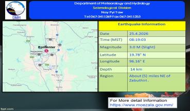 Earthquake News၂၀၂၆ ခုနှစ် ၊ ဧပြီလ ၊ ( ၂၅ ) ရက်