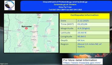 မြေငလျင်သတင်း၂၀၂၅ ခုနှစ် ၊ ဒီဇင်ဘာလ ၊ ( ၁ ) ရက်